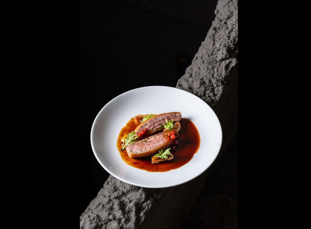 14 Day dry aged duck breast, served with fig & wild local berries